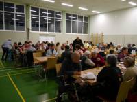 Das Traditionelle Heringsessen der Mommenheimer Landfrauen lockte wieder zahlreiche Gäste um 18 Uhr an die Ausgabetheken. So waren dann nach einer Stunde die 120 Portionen Sahnehering plus Pellkartoffeln verkauft, und in den Tischreihen liefen die angeregten Gespräche auf Hochtouren.
